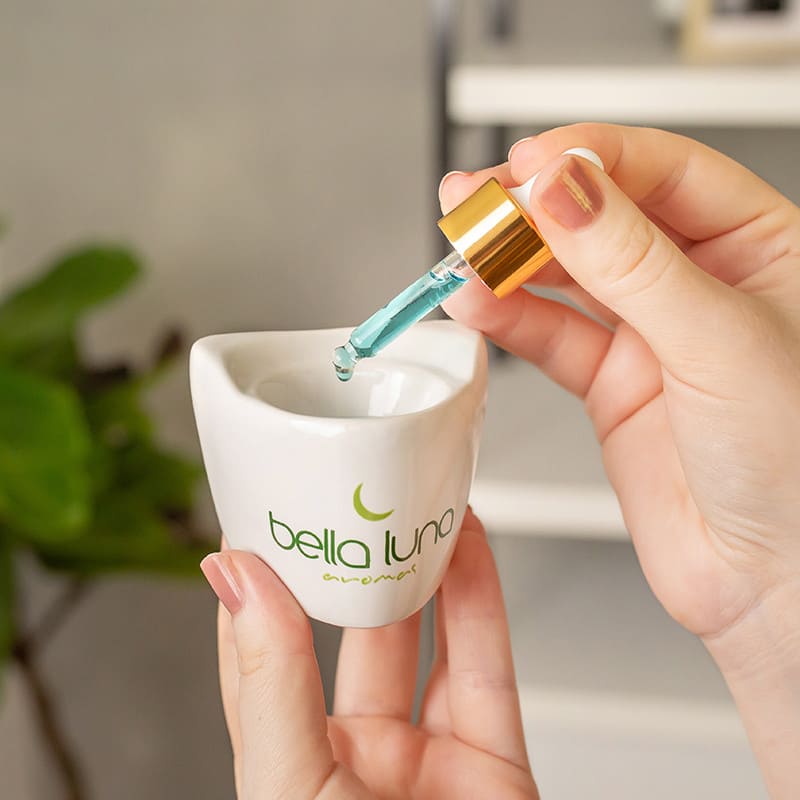 Pingue de 5 a 10 gotas da essência no reservatório